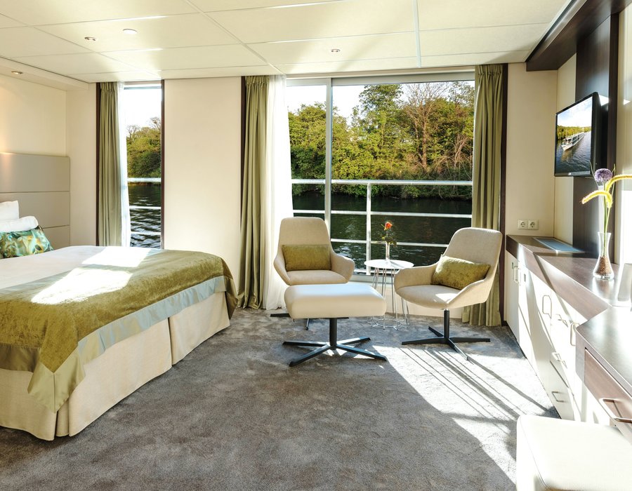 Alle Kabinen liegen außen und sind komfortabel und luxuriös eingerichtet mit kleinen Fenstern die aus Sicherheitsgründen nicht zu öffnen sind. Die Betten lassen sich wahlweise als Doppel- oder Einzelbetten stellen. Die Kabinen dieser Kategorie liegen im vorderen Bereich des Schiffes, bei Anlegemanövern und Schleusendurchfahrten verstärkte Geräusche des Bugstrahlruders.