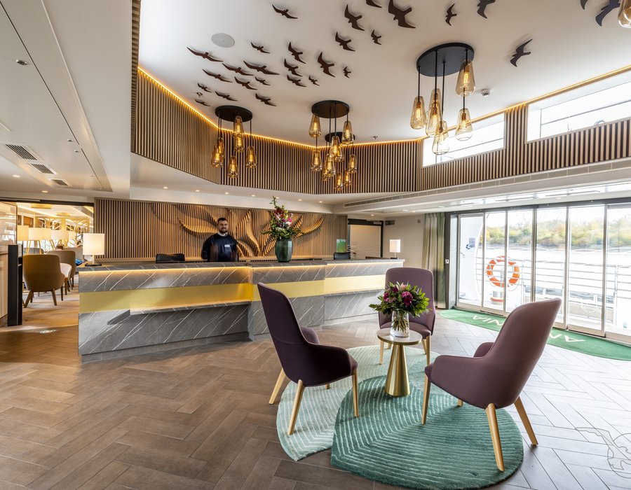 Die großen Kabinen, überwiegend mit französischem Balkon, laden zum Entspannen und Erholen ein. Die schicken Räumlichkeiten sind lichtdurchflutet, stilvoll aber nicht überladen eingerichtet und bieten ein angenehmes Ambiente. MS Antonia verfügt über 4 Passagierdecks, 74 geräumige Kabinen mit französichem Balkon, große und helle Räumlichkeiten mit komfortabler Panorama-Lounge, Lobby mit Rezeption. Lift (zwischen Saturn- und Oriondeck).