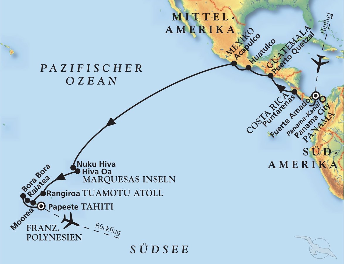 Panama City - Puntarenas - Puerto Quetzal - Huatulco - Acapulco - Moorea - Bora Bora - Papeete