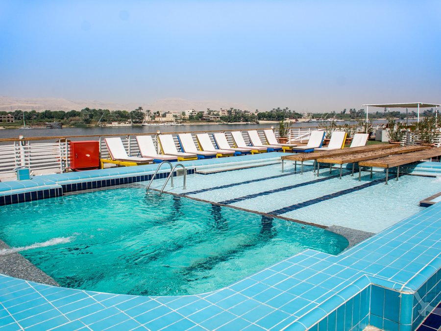 Unser beliebtes Flaggschiff auf dem Nil, MS Nile Vision, ist für uns seit vielen Jahren erfolgreich im Einsatz. Phoenix Reisen chartert das Schiff komplett von der örtlichen Agentur Dynasty Travel und hat dadurch Einfluss auf die Organisation und den Programmablauf. Das in typischer Bauweise konzipierte, großzügig gestaltete und regelmäßig renovierte First-Class-Schiff (Landeskategorie 5 Sterne de Luxe) hat 5 Passagierdecks mit Eingangshalle und Rezeption, Lounge/Bar, Souvenirshop, Boutique und Massagebereich. Auf dem unteren Deck befindet sich das Restaurant (eine Tischzeit). Das Sonnendeck inklusive Swimmingpool und einer Aussenbar/-café verfügt über gemütlich gestaltete Sitzformationen sowie Sonnenliegen mit ausreichendem Angebot an Schattenplätzen (Badetücher inkl). Das Schiff ist vollklimatisiert und verfügt über kostenfreies WLAN in der Lounge (teils eingeschränkter Empfang während der Fahrten). Ausstattung und Service sowie das ansprechende Design des bei unseren Stammgästen beliebten Nilschiffs sind grundlegende Voraussetzungen für den erfolgreichen Einsatz, besonders auf der Nilstrecke zwischen Assuan, Luxor und Kairo. Auf der Reise steht Ihnen die Deutsch sprechende lizensierte Reiseleitung/-führung zur Verfügung. Bordwährung ist Ägyptisches Pfund (EUR wird akzeptiert).