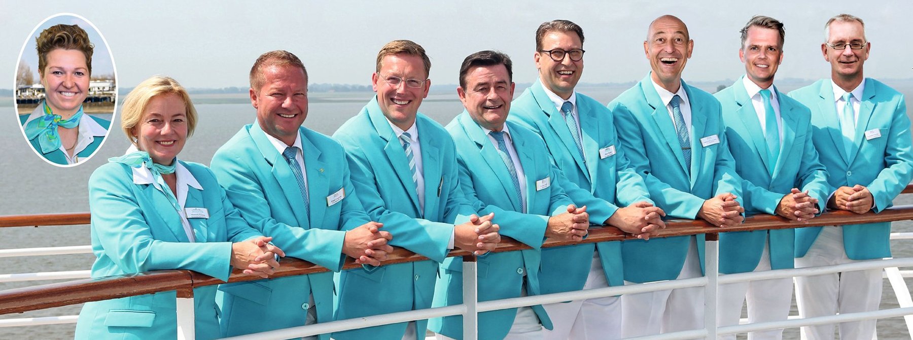 Ihre Gastgeber an Bord (von links): Nadine Grasshoff (Einklinker), Manuela Bzdega, Klaus Gruschka, Steffen Spiegel, Thomas Gleiß, Jörn Hofer, Joe Liemberger, Moritz Stedtfeld und Holger Winkler