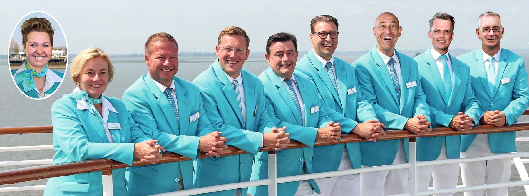 Sie sind Ihre Gastgeber auf hoher See und immer zur Stelle, wenn es darum geht, Ihre Urlaubswünsche zu erfüllen: Kapitän, Kreuzfahrtdirektor und Hotelmanager sorgen gemeinsam mit ihren Crewmitgliedern und Abteilungen für einen reibungslosen Ablauf Ihrer unvergesslichen Kreuzfahrt an Bord unserer Hochseeflotte. Kennzeichnend für unsere gesamte Schiffsleitung ist eine langjährige, sehr enge und vertrauensvolle Zusammenarbeit. Ein aufrichtiger Teamgeist und eine herzliche Gastfreundschaft werden von der Brücke über alle Decks bis hinunter in den Maschinenraum mit Herz und Seele gelebt. Verlassen Sie sich darauf: Die Herzen aller Mitarbeiter schlagen türkis-weiß – vom Offizier bis zur Stewardess, vom Reiseleiter bis zum Barkeeper und vom Koch bis zur Hausdame.